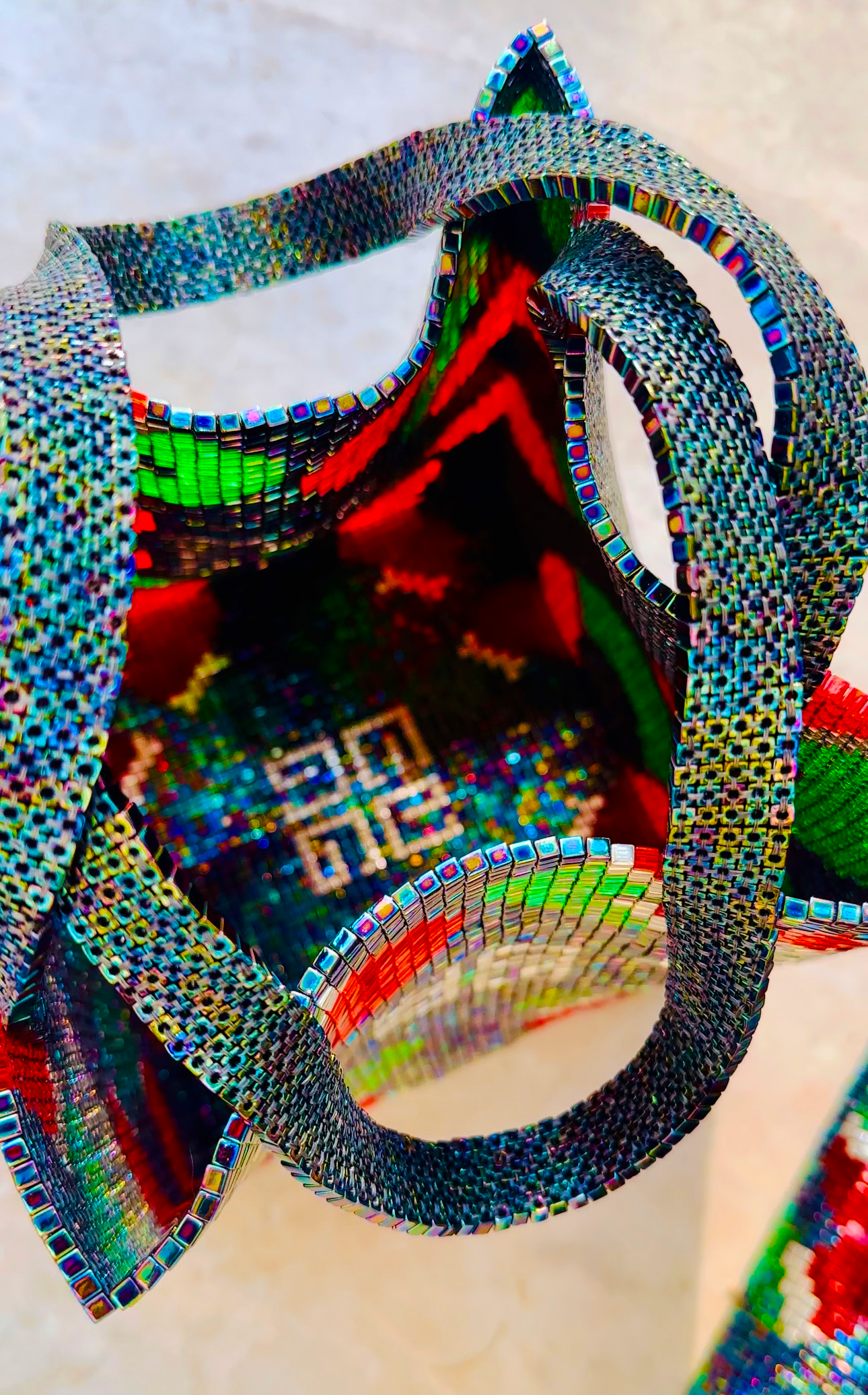After three years of extensive research and development in the use of new sustainable materials in the fashion textiles industry, we discovered the amazing potential of glass, which is made from natural and abundant raw materials (sand, soda, ash and limestone). Our self-developed and patented textile technology allowed us to create “Crystallux”, a unique line of glass textiles, meticulously handmade by our skilled Venezuelan artisans. These glass textiles are not just a new material but a canvas where light dances, filling the products with life. As light moves through our glass fabrics, it reflects and refracts, creating a dynamic interplay that causes the textiles to shimmer and shine—reminiscent of a diamond’s brilliance or the gleam of the future of fashion itself.