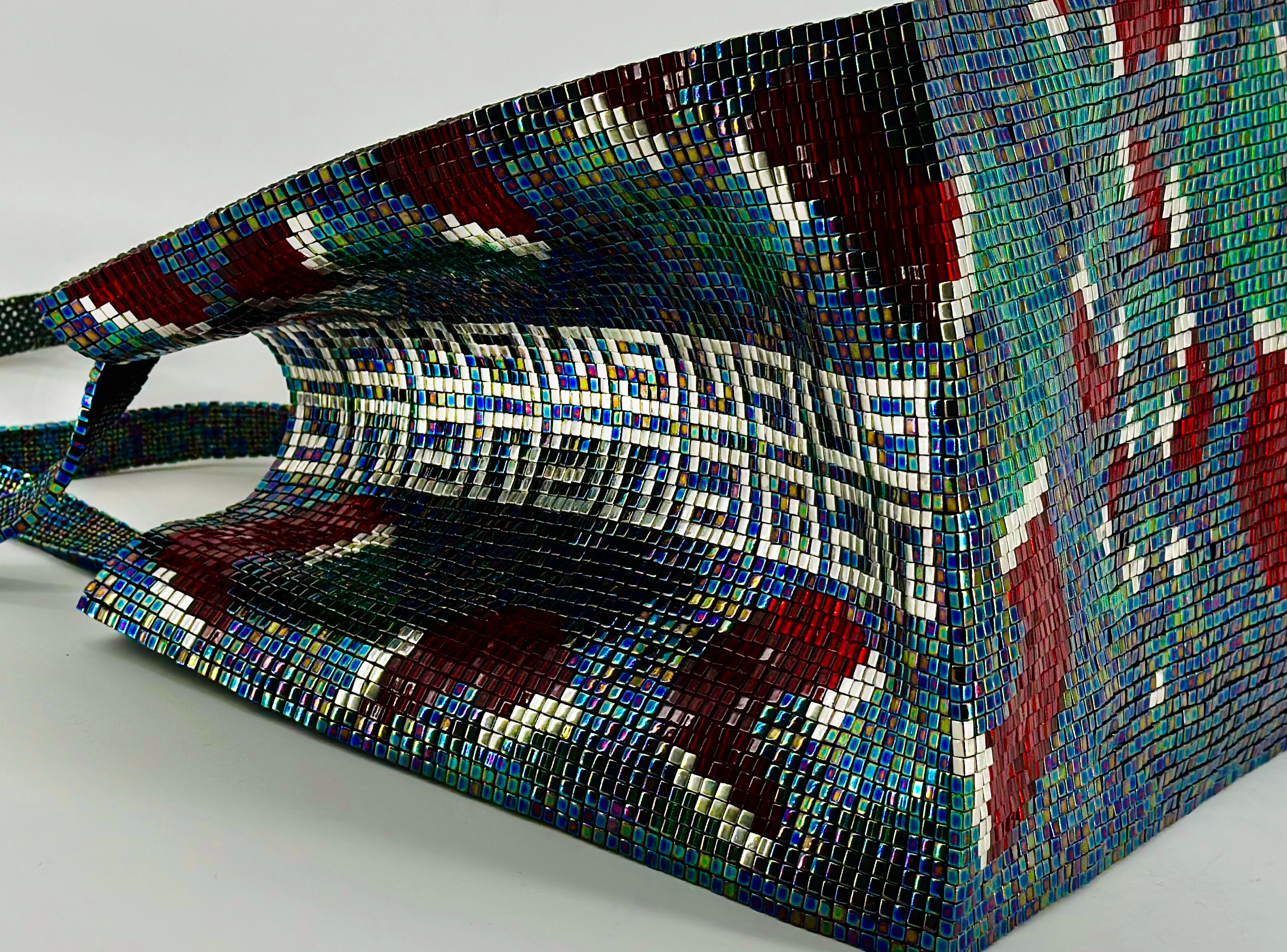 Crystallux is a translucent architectural material developed from recycled glass, hand-processed in Venezuela. Its hybrid nature, situated between a structural textile and a modular, semi-rigid surface, allows for its application in high-end spatial systems, among other uses.